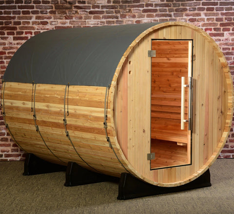 Protect your barrel sauna without getting out of style by using our barrel sauna rain jackets! Its hand-crafted marine-rated canvas is shown to safeguard your sauna from both water or strong winds. This barrel rain jacket is lightweight and can be easily positioned or removed from your sauna barrel; durable bungees are used to fasten the jackets.